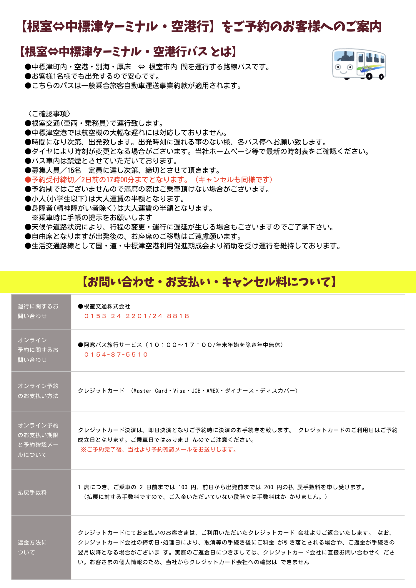 ★中標津空港線ご利用のお客様へのご案内★